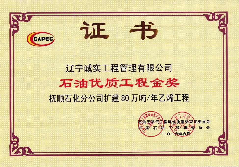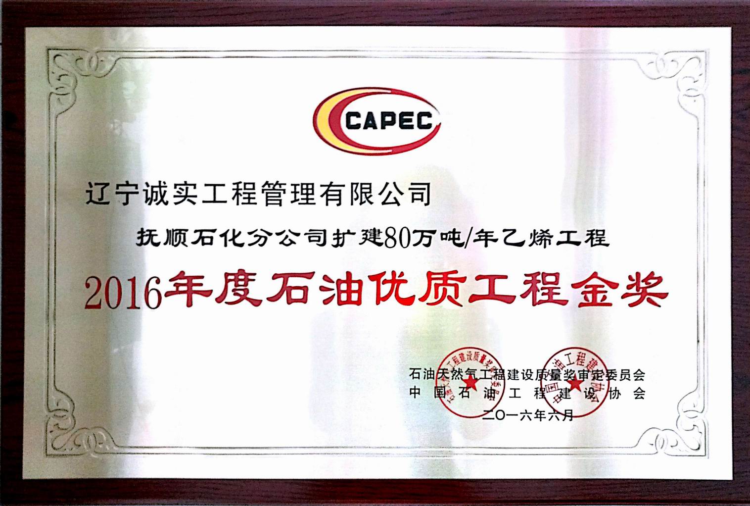 2016年石油優(yōu)質(zhì)工程金獎(撫順石化...