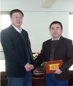 總經(jīng)理孫學良(左一)與張國富教授(左二)、
