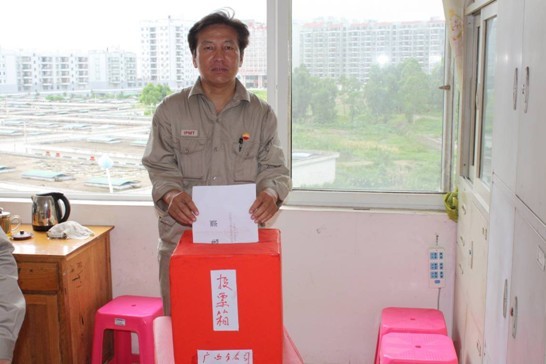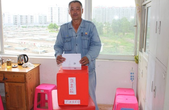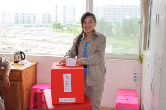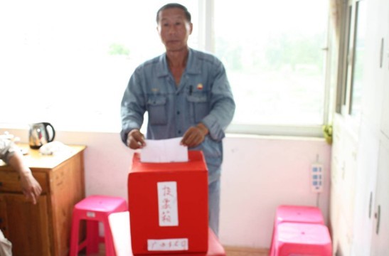 廣西視頻會(huì)場(chǎng)的黨員在投票選舉