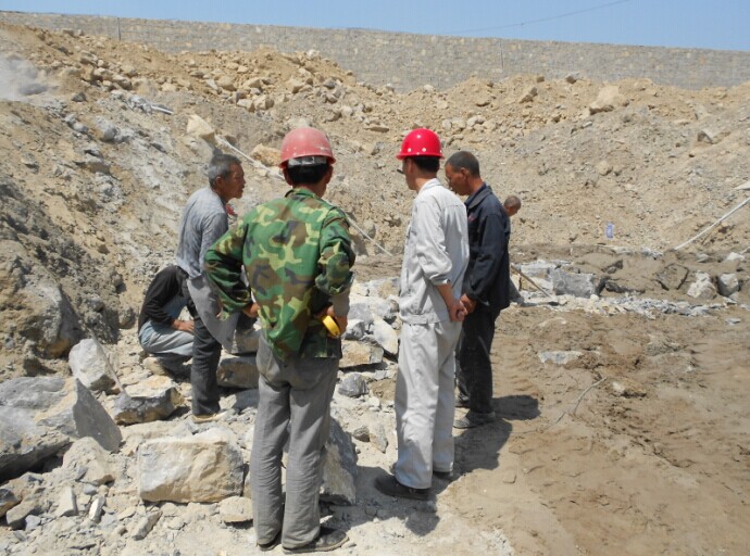 主罐區(qū)毛石基礎砌筑,姜總指導工作